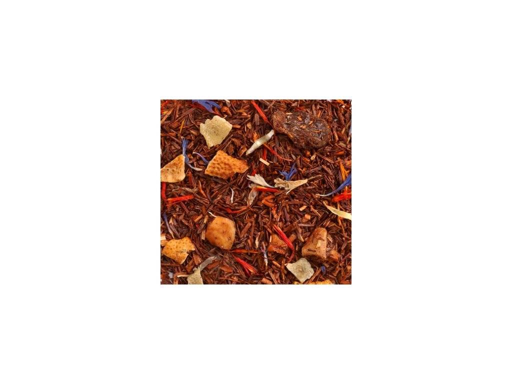 Aromatický rooibos s hrozienkami, jemnou citrusovou linkou a korenistým nádychom klinčeka a kardamómu. Čaj je prirodzene bez kofeínu, vhodný na celodenné popíjanie aj pre deti. Rooibos je známy vysokým obsahom antioxidantov a minerálov.