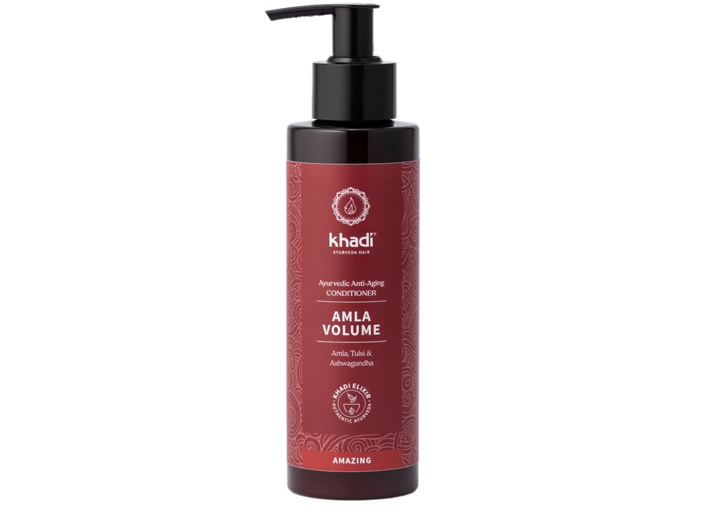 Khadi Amla Objem je intenzívne vyživujúci ajurvédsky elixír kondicionér, určený pre vlasy, ktoré strácajú hustotu, silu a pružnosť. Dodáva vlasom viditeľný objem, pevnosť a mladistvú elasticitu, bez zaťaženia a bez silikónov.