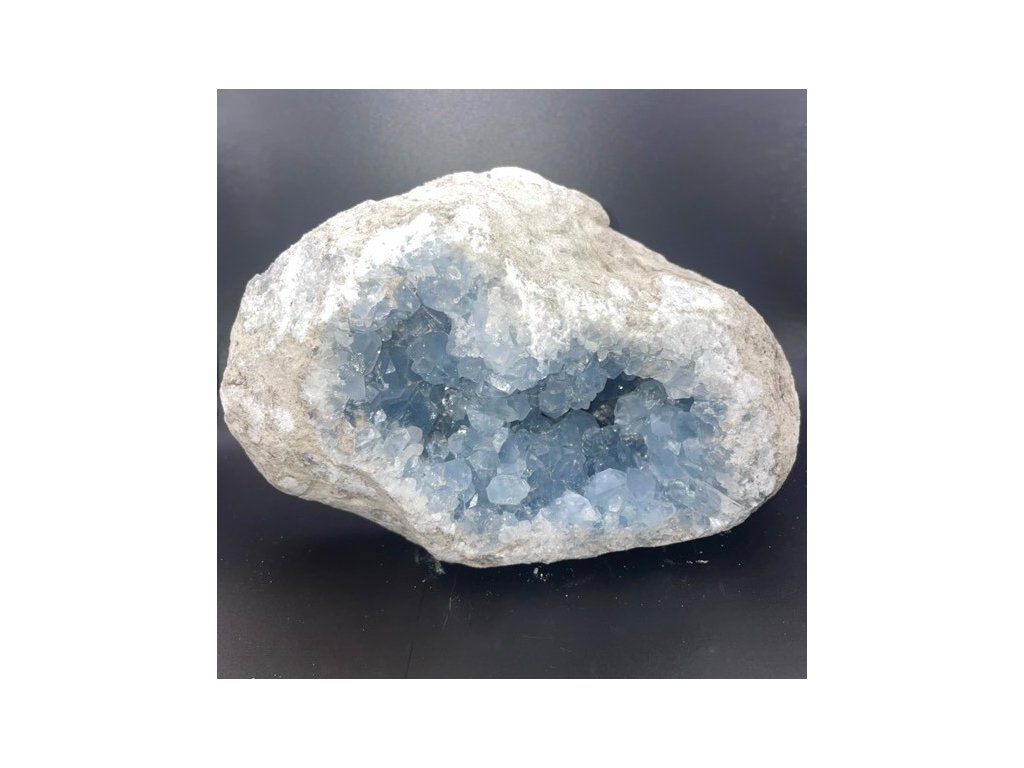 Surová geoda z celestínu s rozmermi približne 20 × 12 cm.