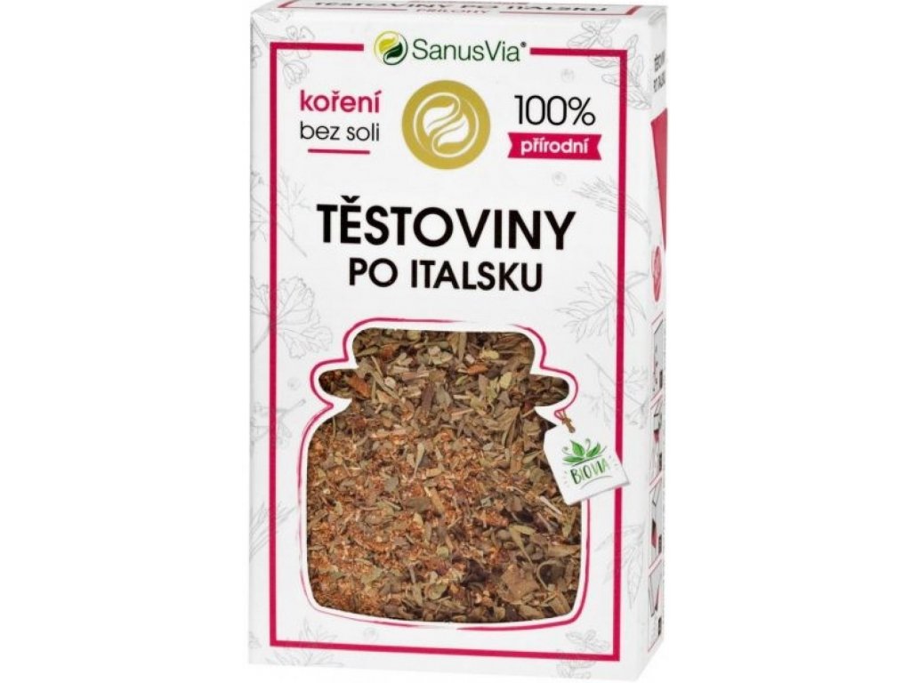 BIO - bazalka, paprika mletá sladká, cesnak mletý, oregano, sušené paradajky kúsky, cibuľa granulovaná, tymián, saturejka, estragón