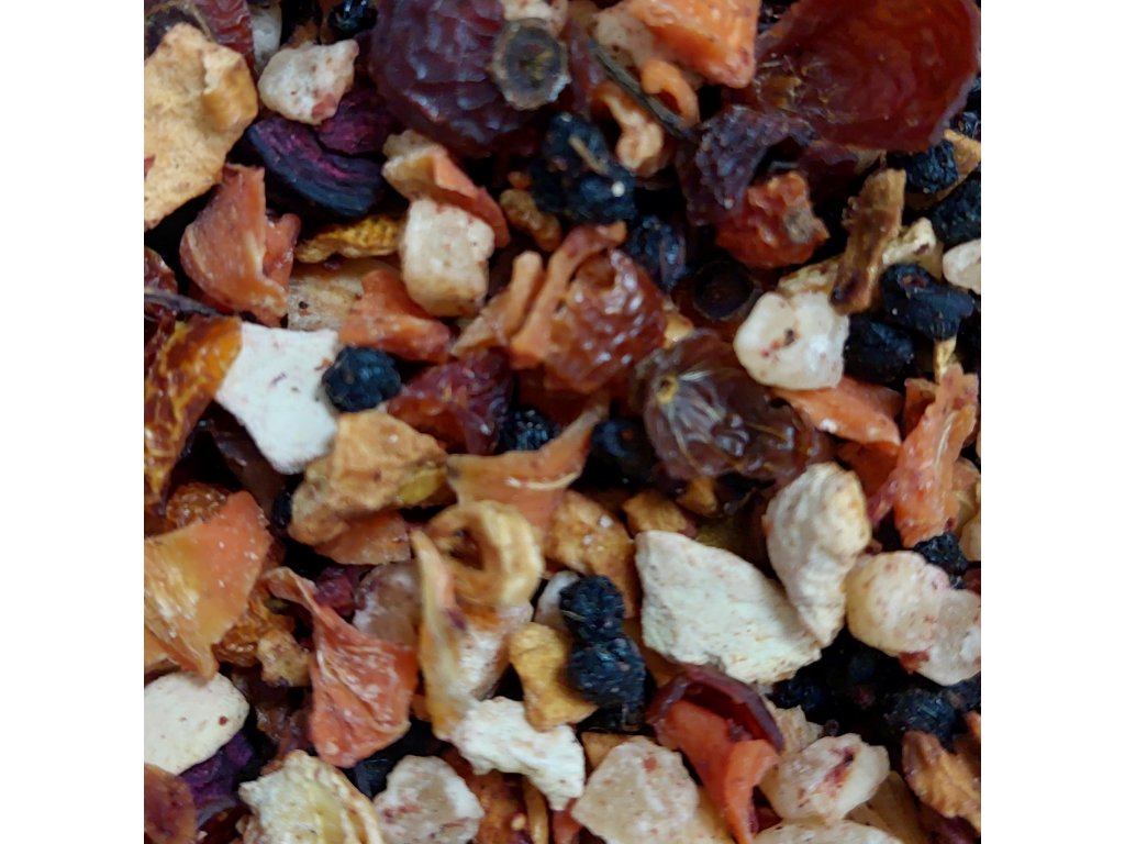 Ovocný čaj s jemne sladkou chuťou jahôd s tónmi ananásu. Známy aj ako Pohladenie na duši.