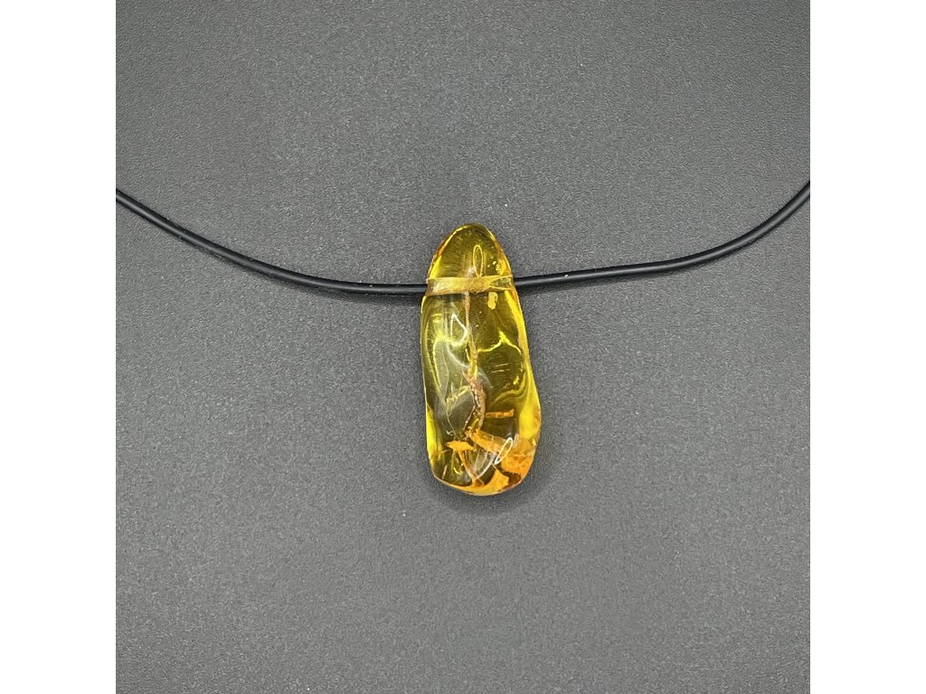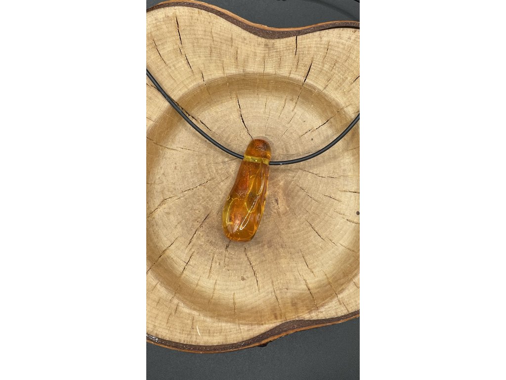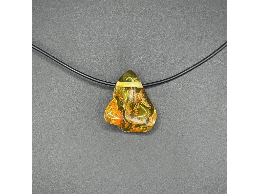 Tento originálny prívesok je vytvorený zo skamenenej stromovej živice – jantáru, jedného z najstarších a najvzácnejších organických minerálov. Každý kus je jedinečný svojou farbou, štruktúrou a vnútornými vzormi, ktoré často ukrývajú drobné čiastočky rastlín či hmyzu z pradávnych čias.