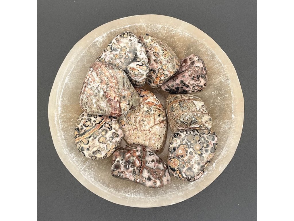 Jaspis leopardí podporuje tvorivú vizualizáciu, pomáha splniť predsavzatia a plány, znižuje stres a harmonizuje telo i myseľ. Učí skromnosti, nezištnosti a uvoľneniu, ochraňuje pred negatívnymi energiami a zlými snami. V spirituálnej praxi sa používa pri meditáciách, astrálnom cestovaní a na podporu spomienok na minulé životy.