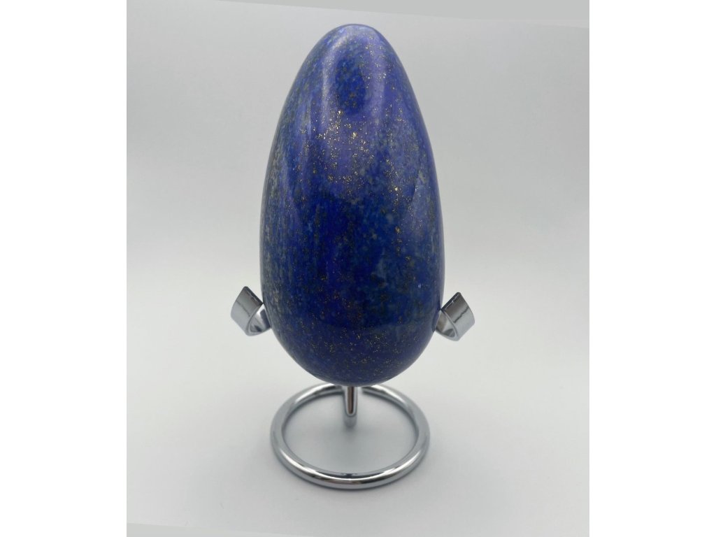 Leštené vajce z lapis lazuli s rozmermi približne 12 × 6 cm.