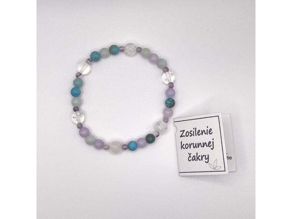 Otvorte bránu k vyššiemu vedomiu s kombináciou Amazonitu, Ametystu, Tyrkysu a Krištáľu. Tento náramok podporuje duchovné spojenie, vnútorný pokoj a jasnú myseľ. Ideálny pri meditáciách alebo keď túžite po harmónii a hlbšom zmysle.