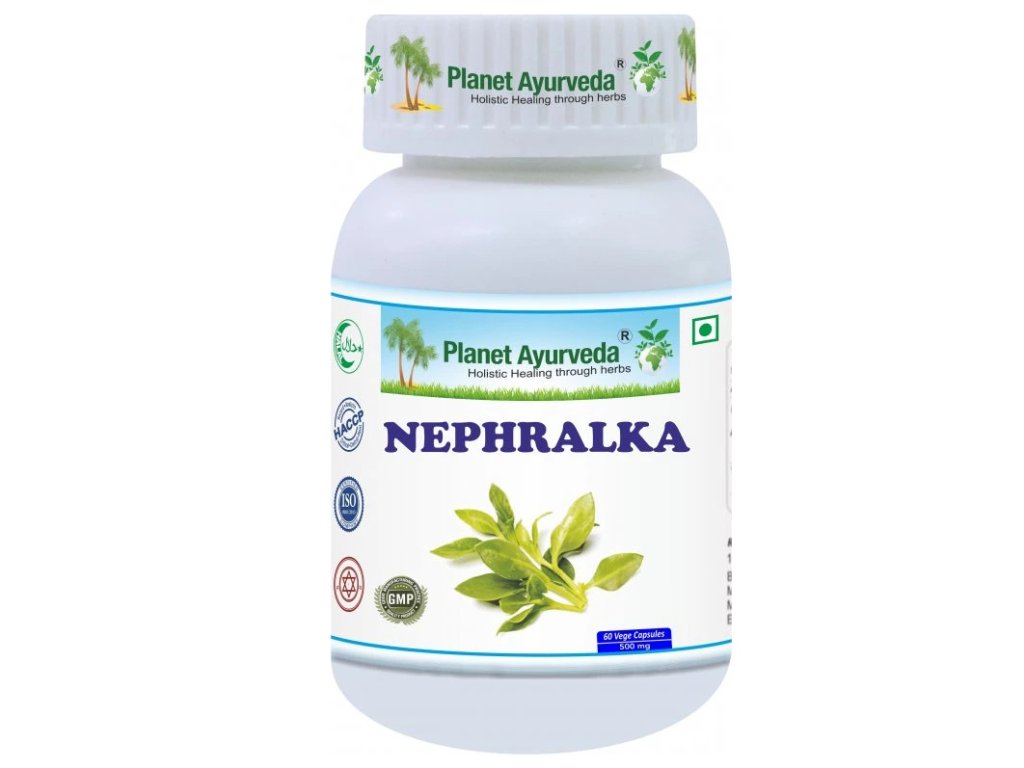 Ajurvédske kapsuly s kombináciou bylín ako Punarnava, Bhumi Amla a Kalmegh pre podporu detoxikácie a zdravia močových ciest.