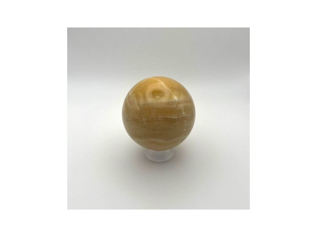 Guľa z oranžového kalcitu s približným priemerom 6 cm a hmotnosťou 416 g.
