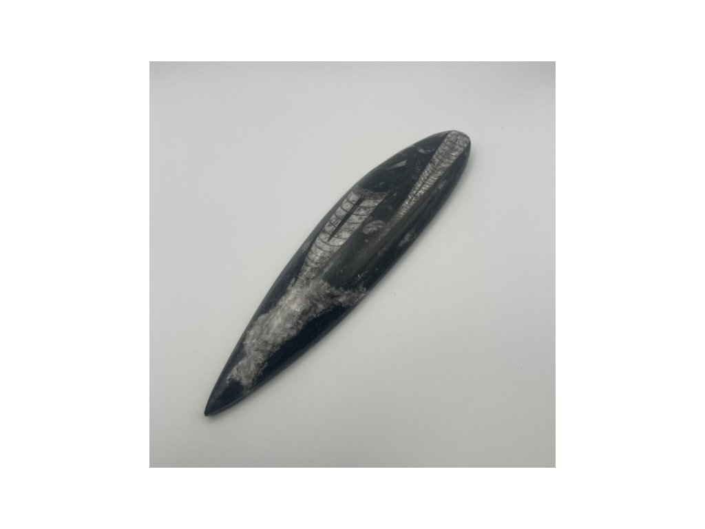 Skamenelina prastarého hlavonožca orthocerasa s rozmermi približne 19 × 5 cm. Unikátny prírodný kúsok pochádzajúci z obdobia devónu, vhodný ako dekoračný predmet aj zberateľský kameň.