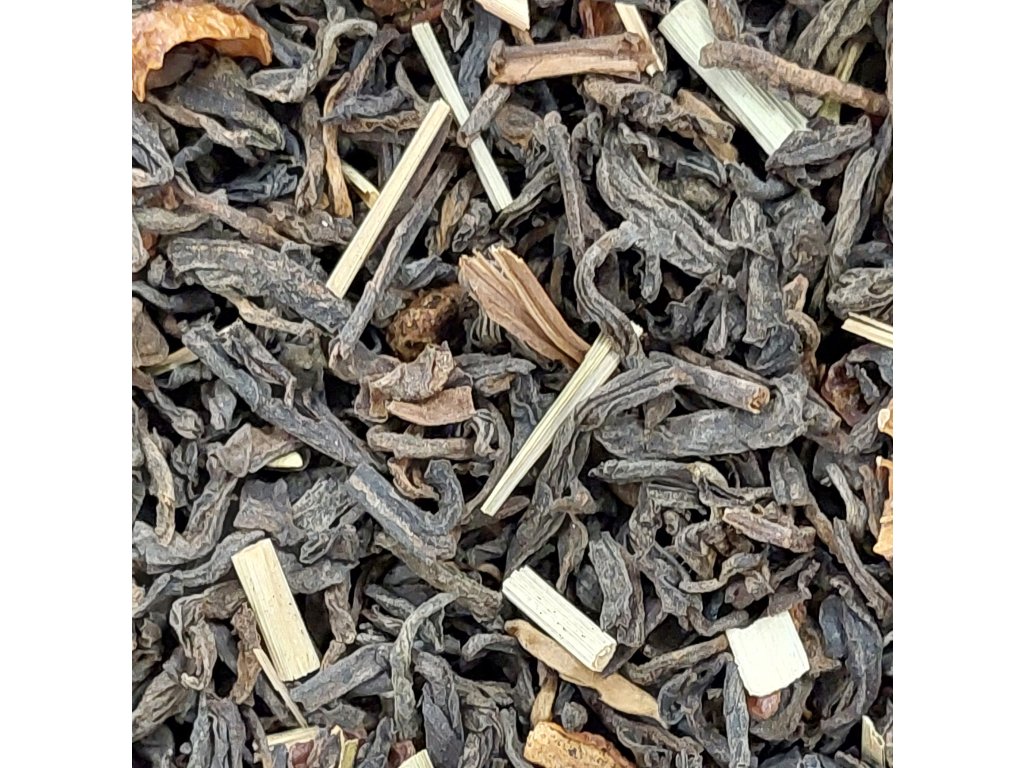 pravý čierny čaj Pu-Erh (85,2%), šípok, jablká, zelené mate, aróma, citrónová tráva.