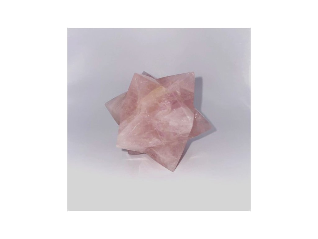 Ruženín v tvare merkaby, veľkosť 8 cm, hmotnosť 435 g. Kameň lásky a harmónie, spojený s otváraním srdcovej čakry a podporou vzťahov.