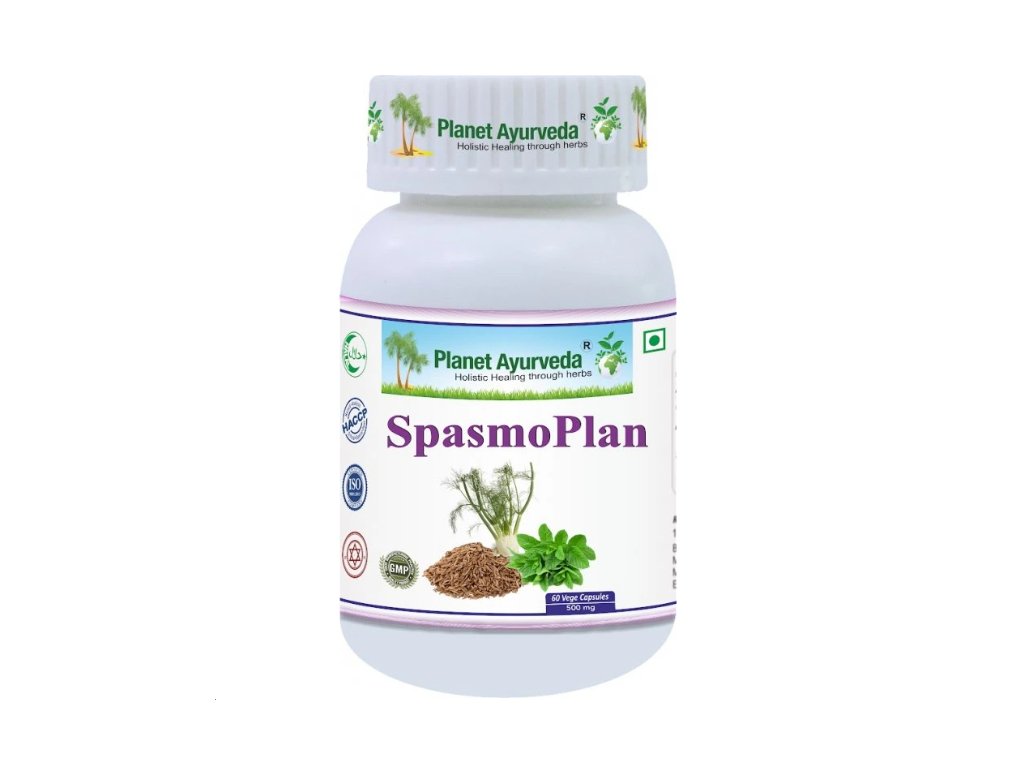 Spasmo Plan kombinuje silu piatich bylín a minerálnej zložky pre rýchlu úľavu pri svalových kŕčoch, menštruačných bolestiach a tráviacich problémoch. Ajurvédska receptúra harmonizuje Vata a Kapha dóšu, čím prispieva k uvoľneniu hladkého svalstva, zníženiu nadúvania a podpore trávenia.