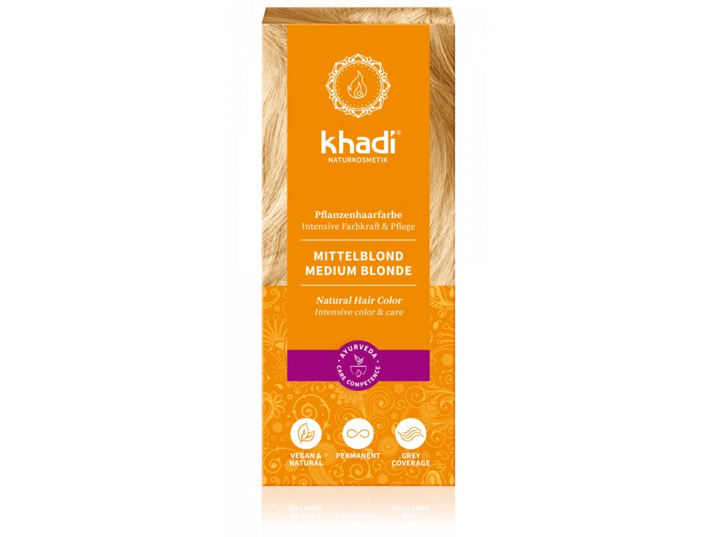 Nechajte svoje vlasy žiariť sviežou strednou blond a vneste do nich delikátne zlaté až karamelové odlesky. Khadi rastlinná farba na vlasy Stredná blond farbí vlasy stredne blond odtieňom s vysokým leskom. Výsledný tón závisí od východiskovej farby Vašich vlasov, ako aj od zvolenej doby pôsobenia. Svetlým vlasom tak dáva chladnú strednú blond až teplú, zlato až jahodovo blond v strednej hĺbke farby. Rastlinné blond farby nenarušujú vlasovú štruktúru a preto nemajú zosvetľujúci účinok. Pri tmavých vlasoch tak nedochádza k ich zosvetleniu, získavajú zlaté až jahodovo zlaté odlesky a celkovo krásny lesk. Spolu s farbou získavajú vlasy zároveň výrazný lesk, bohatý objem a intenzívnu starostlivosť v jednom kroku!