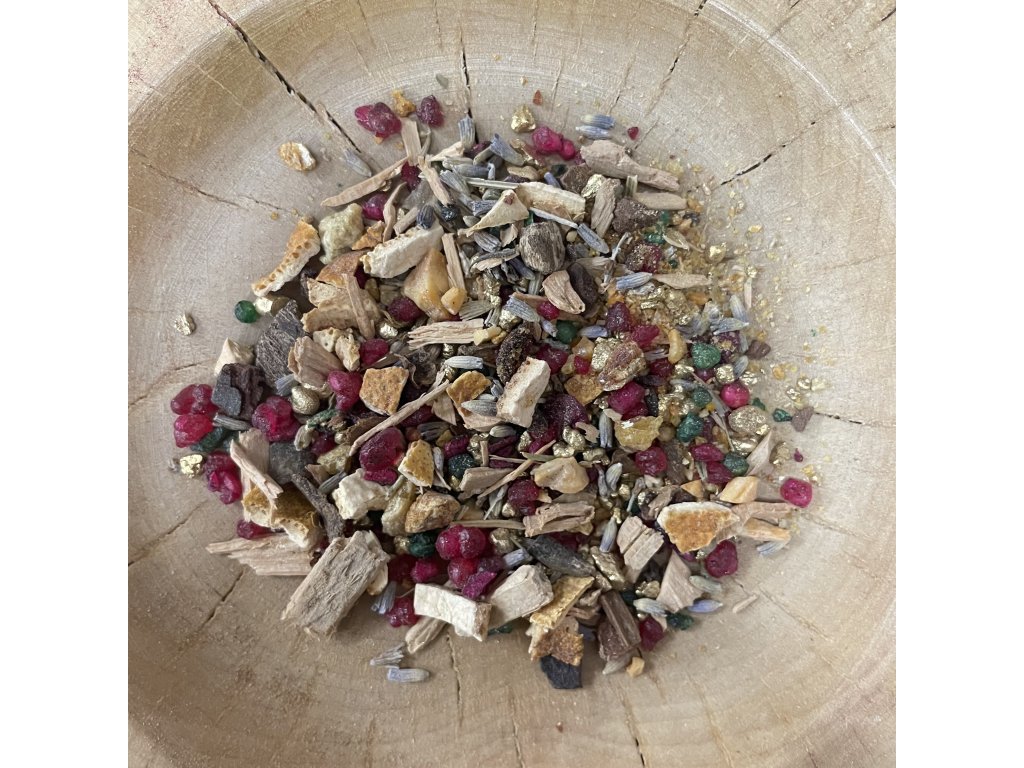 Vonná zmes určená na vykurovanie, vytvorená s dôrazom na jemnú a harmonickú arómu. Kombinácia kadidiel a bylín bola vybraná pre vytvorenie príjemnej atmosféry a pokojného prostredia. Vhodná pre bežné domáce použitie aj pre chvíle odpočinku.